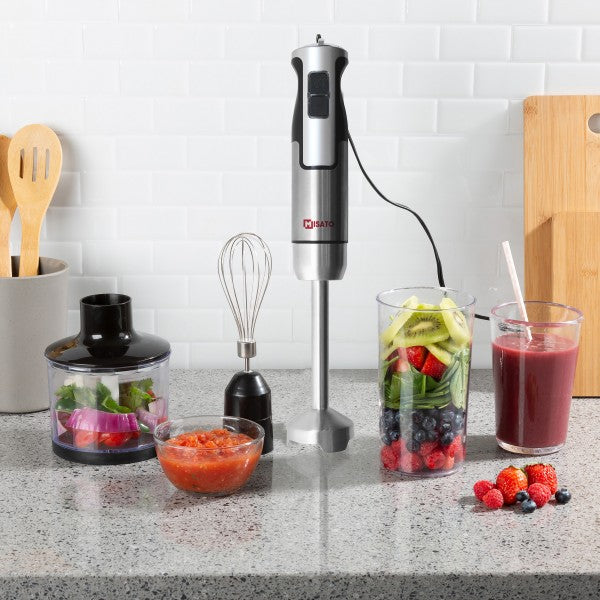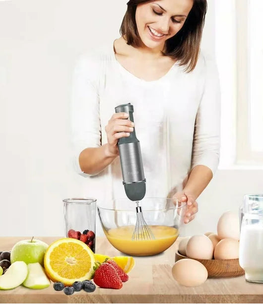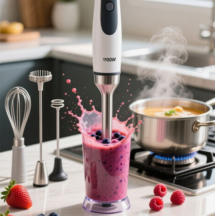 🥤 Prepara batidos y jugos naturales. 🍰 Bate huevos y cremas en segundos. 🥩 Pica carne, verduras o frutos secos. ☕ Espuma tu café o leche como un barista.