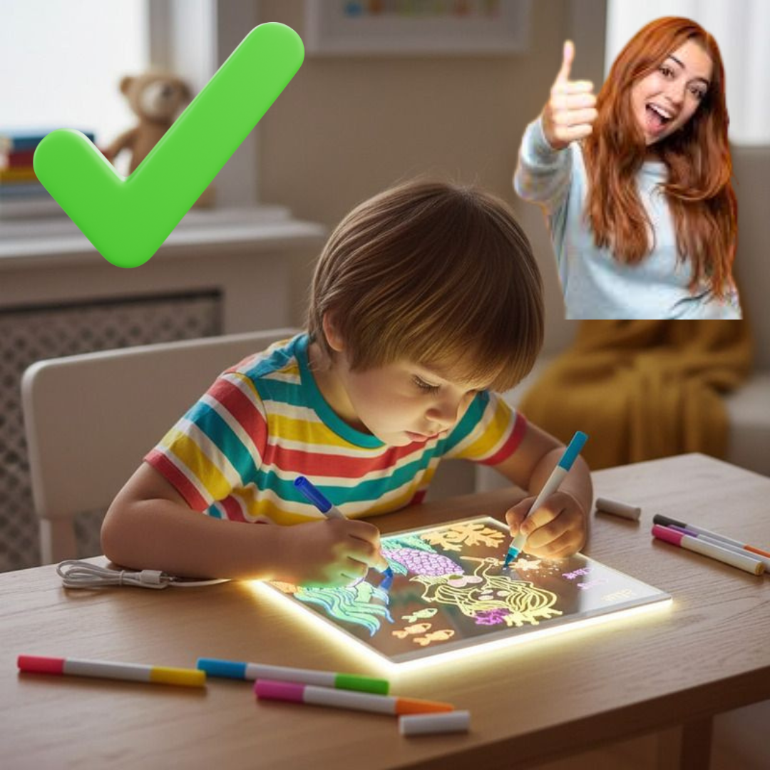 La Pizarra LED Creativa es una herramienta que lo motiva a imaginar, dibujar, aprender y expresar todo su potencial de forma divertida y saludable. Cada trazo ilumina su mente, estimula su concentración y despierta habilidades que lo acompañarán para toda la vida. 🌈💡